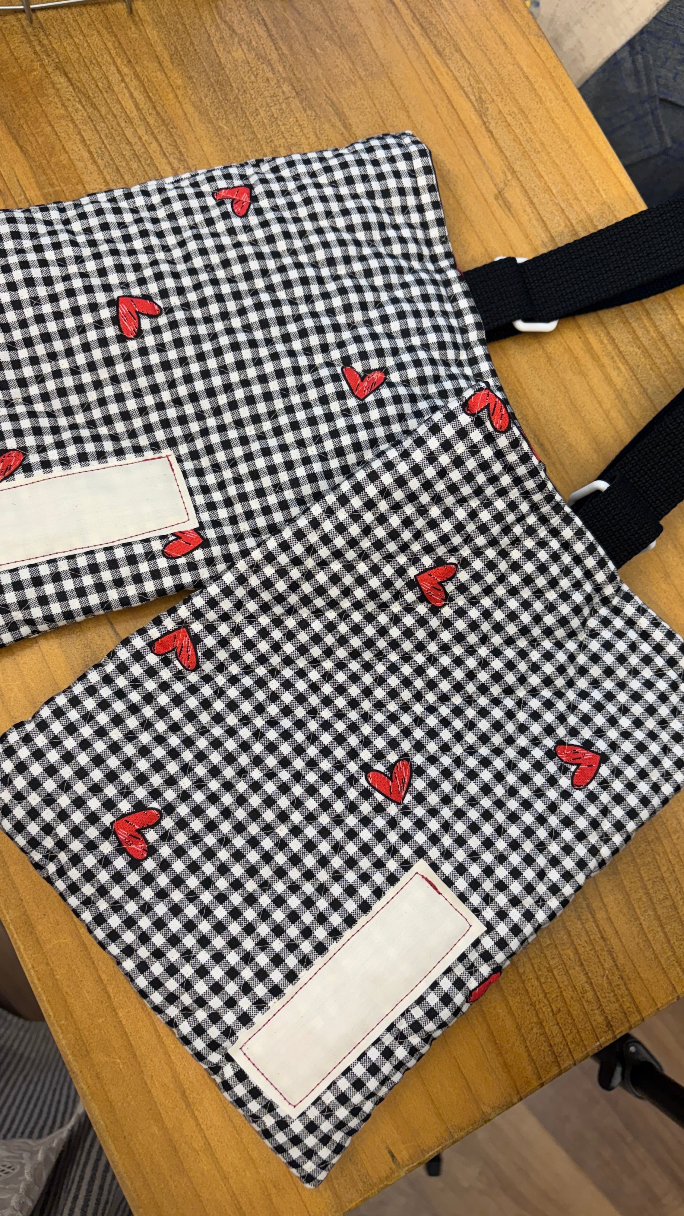 即納 シューズ入れ キルティングチェックハート 入園グッズ