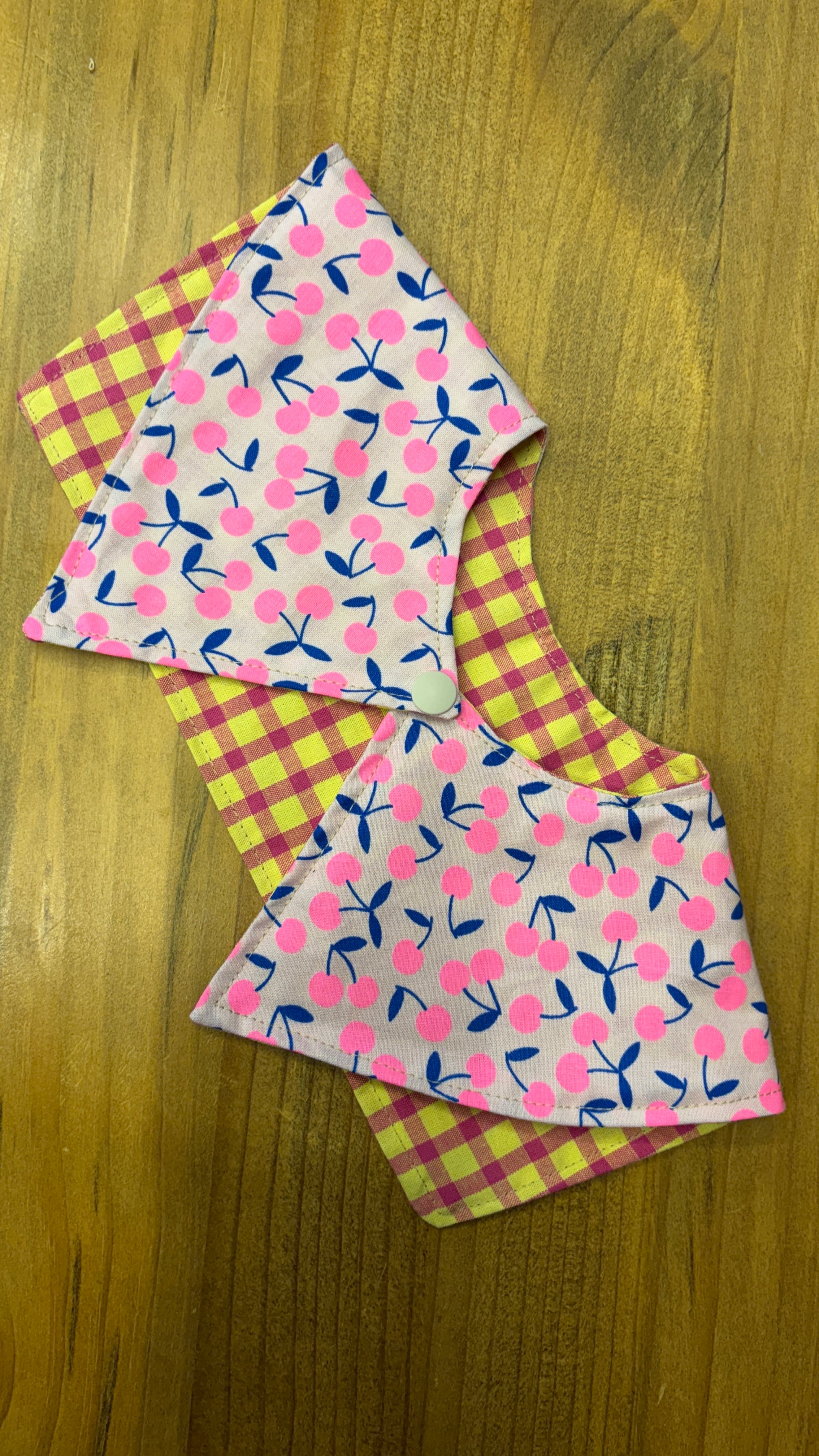 リバーシブル前後着付け襟 チェック×さくらんぼ