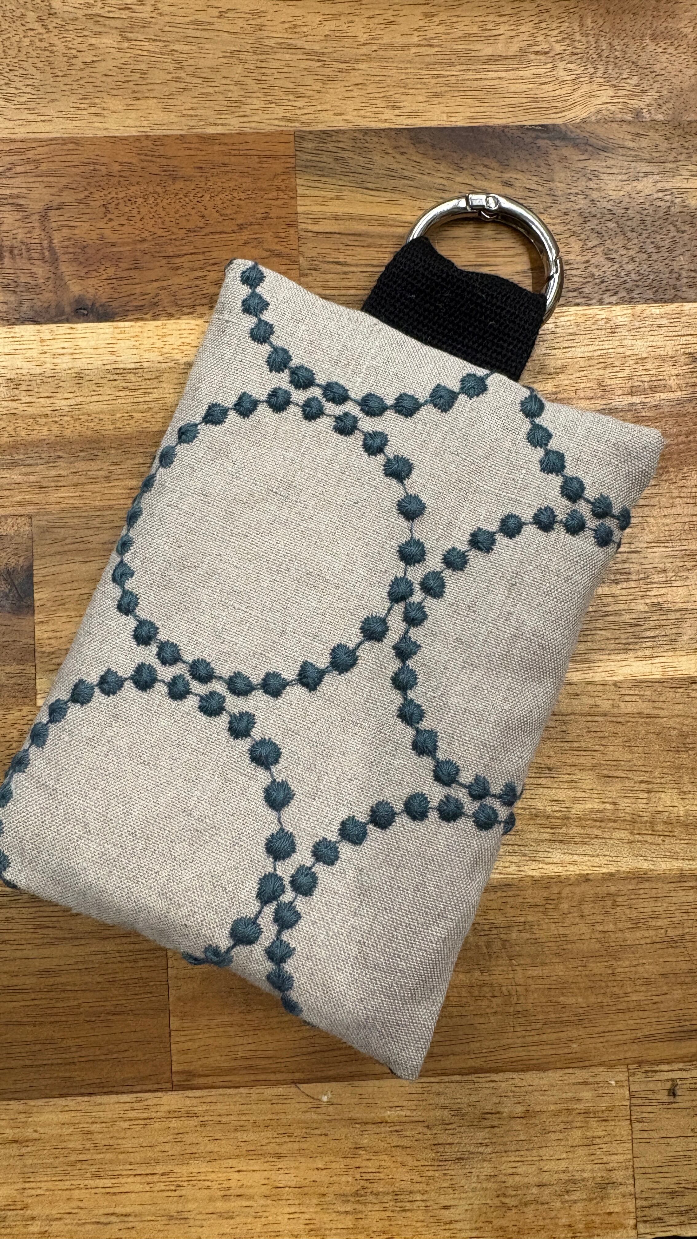 ティッシュケース タンバリン ベージュ×くすみブルー 刺繍